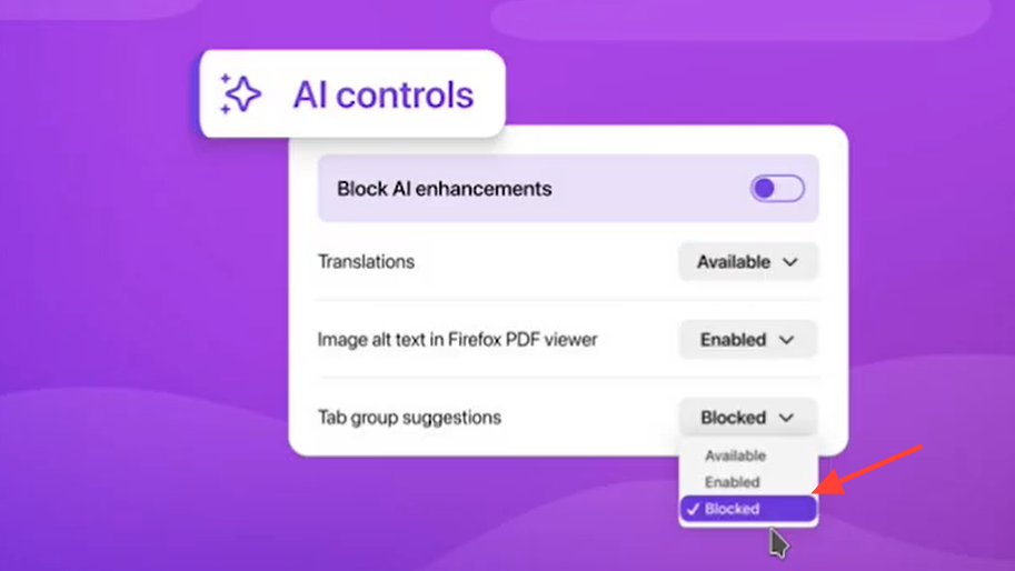 Firefox 148 introduced a dedicated AI Controls section in the desktop browser settings. It lives under Settings → AI Controls and provides a single Block AI enhancements toggle. Flipping this on suppresses all current and future generative AI features, including pop-ups and prompts encouraging you to try them.