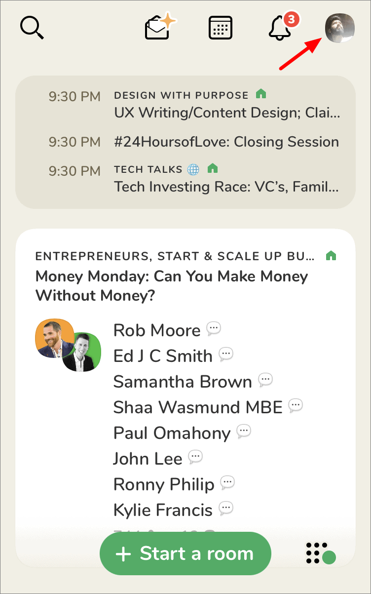 Open the Clubhouse app and tap on your photo at the top-right corner of the Hallway. If you haven’t uploaded a photo, your initials will be displayed in that section.