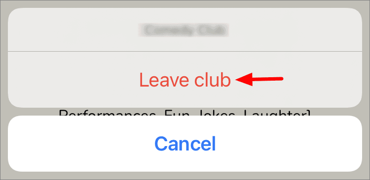 Tap on ‘Leave club’ on the pop-up at the bottom of the screen.