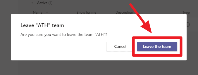 Step 5: A confirmation dialog will appear. Click on the Leave the team button to confirm that you want to leave.