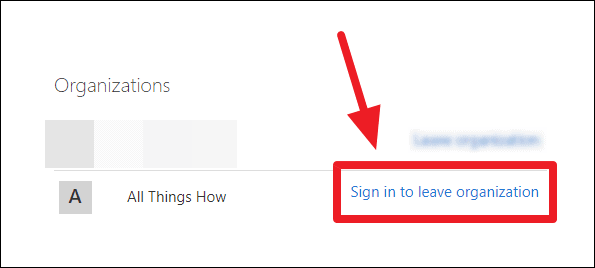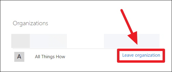 Step 4: You'll see a list of organizations associated with your Microsoft account. Find the organization you want to leave and click on the Leave organization link next to it.