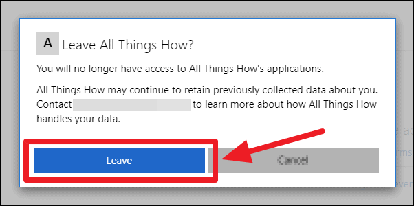 Step 7: A confirmation dialog will appear. Click on the Leave button to confirm that you want to leave the organization.