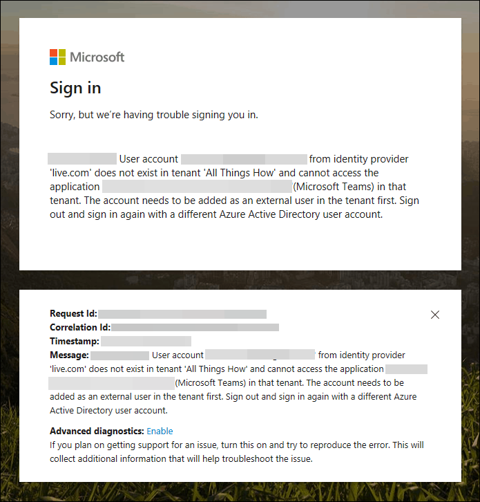 If you were signed into the organization in Microsoft Teams, you might receive an error message stating that you're no longer a member.