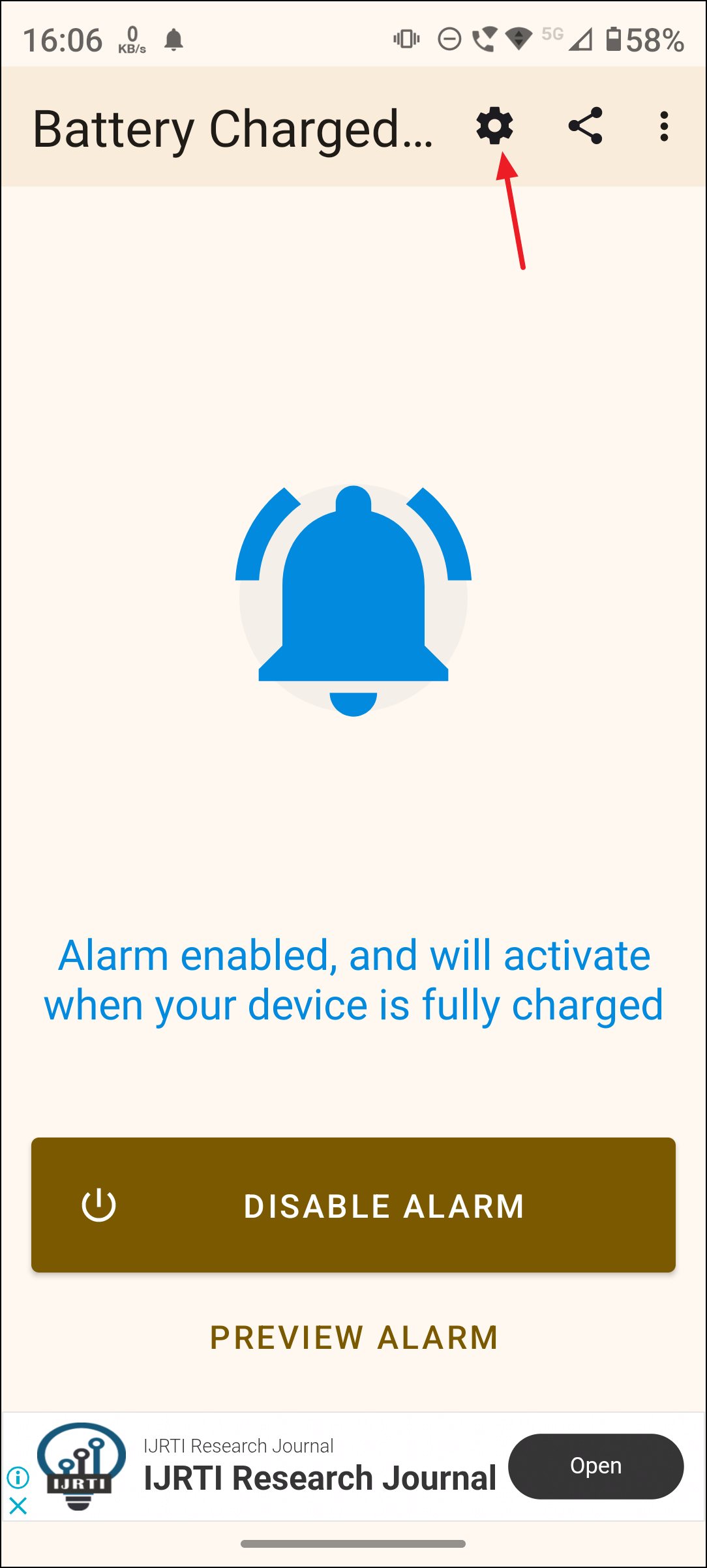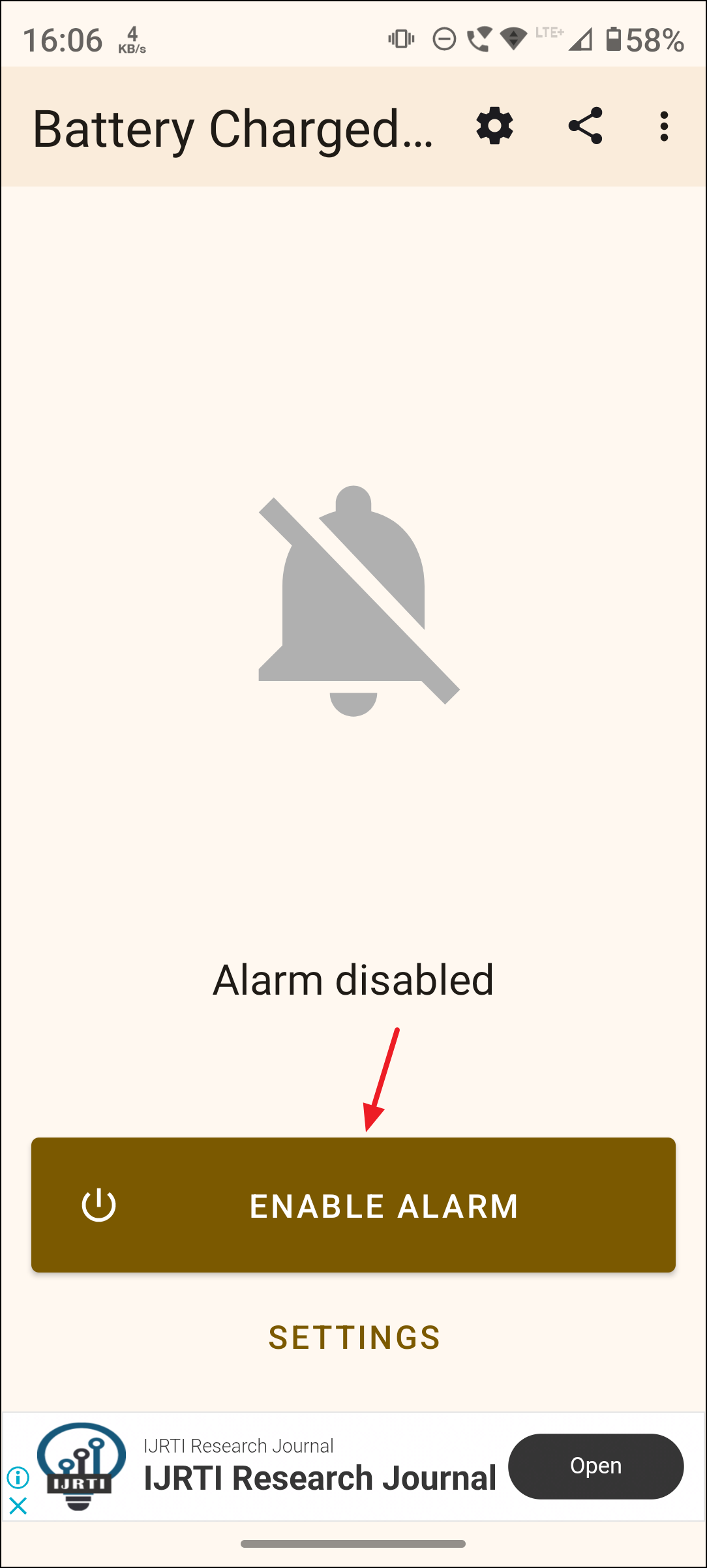 Step 2: Open the app and tap "Enable Alarm." Now that the alarm has been set, you need to set the battery percentage at which the alarm will activate.