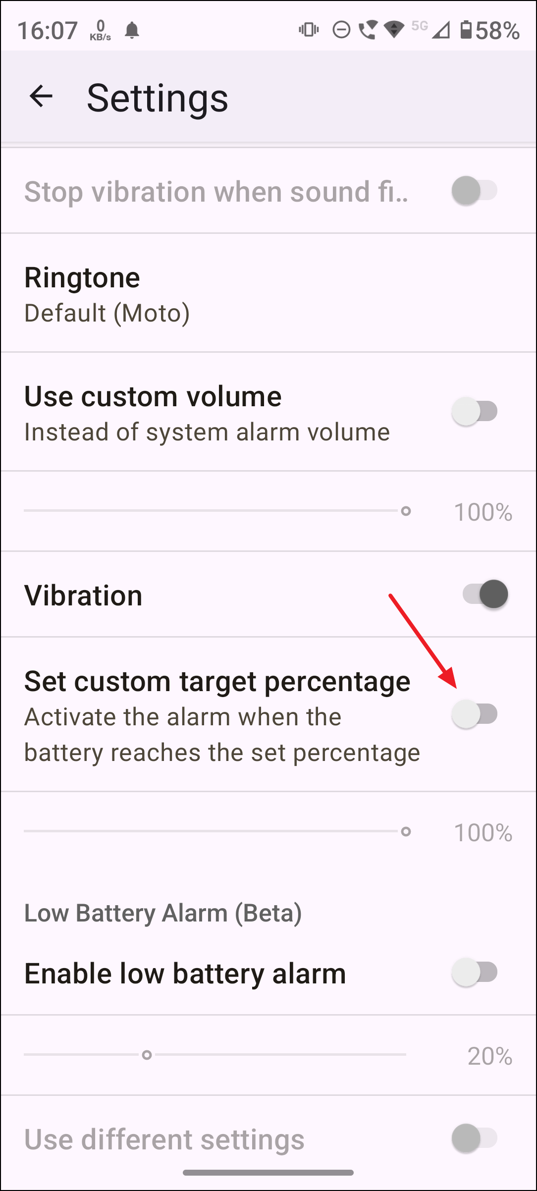 Step 4: Then tap the "Set custom target percentage" toggle to turn it on.