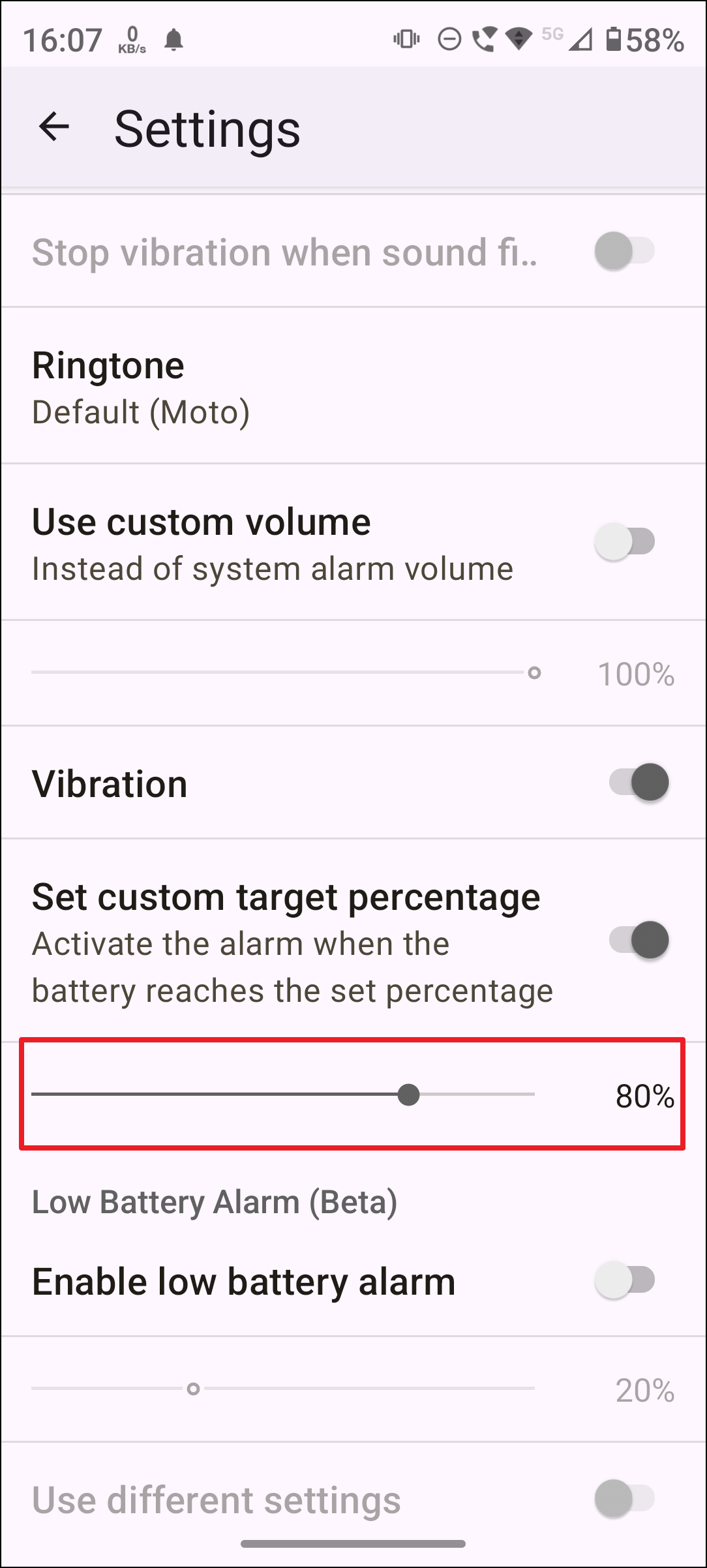If your Android phone doesn't have built-in charging limit features, you can use third-party apps like Charge Alarm or Battery Guru to notify you when your phone reaches 80%.