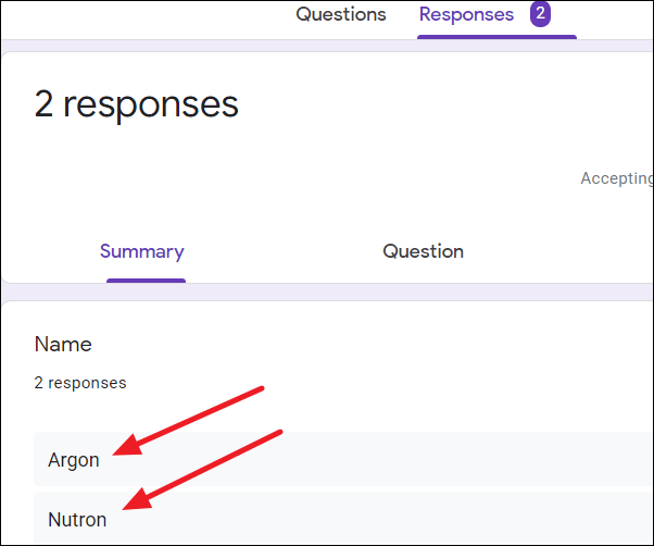 Viewing responses in Google Forms