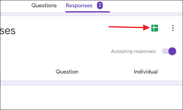 You can access the collected responses directly in Google Forms by clicking on the Responses tab, as shown below.
