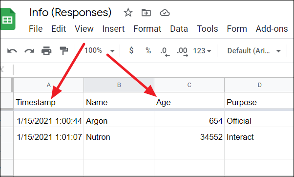 Step 3: Google Sheets will generate a spreadsheet containing all your form questions as column headers, along with an additional Timestamp column that records when each response was submitted. This organized layout makes it easier to sort, filter, and analyze your data.