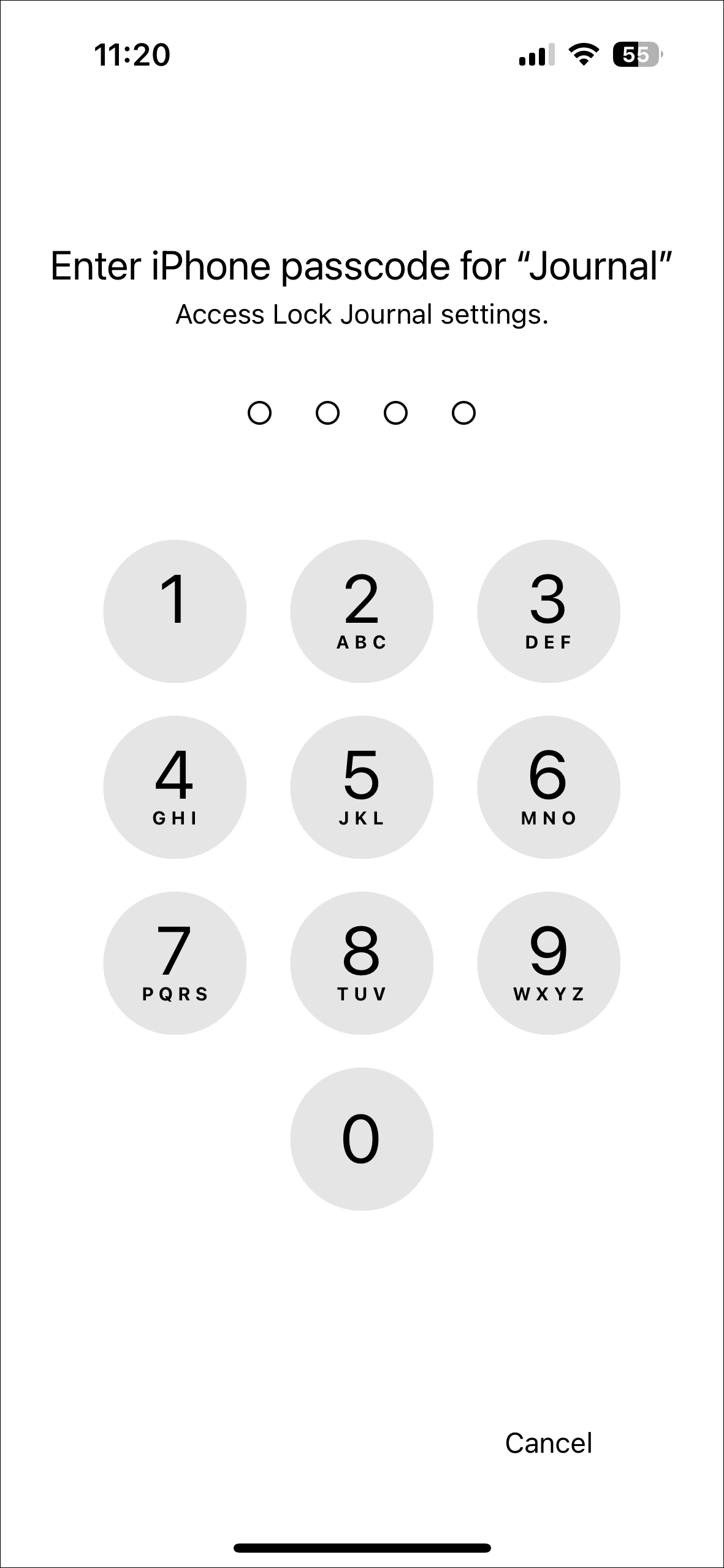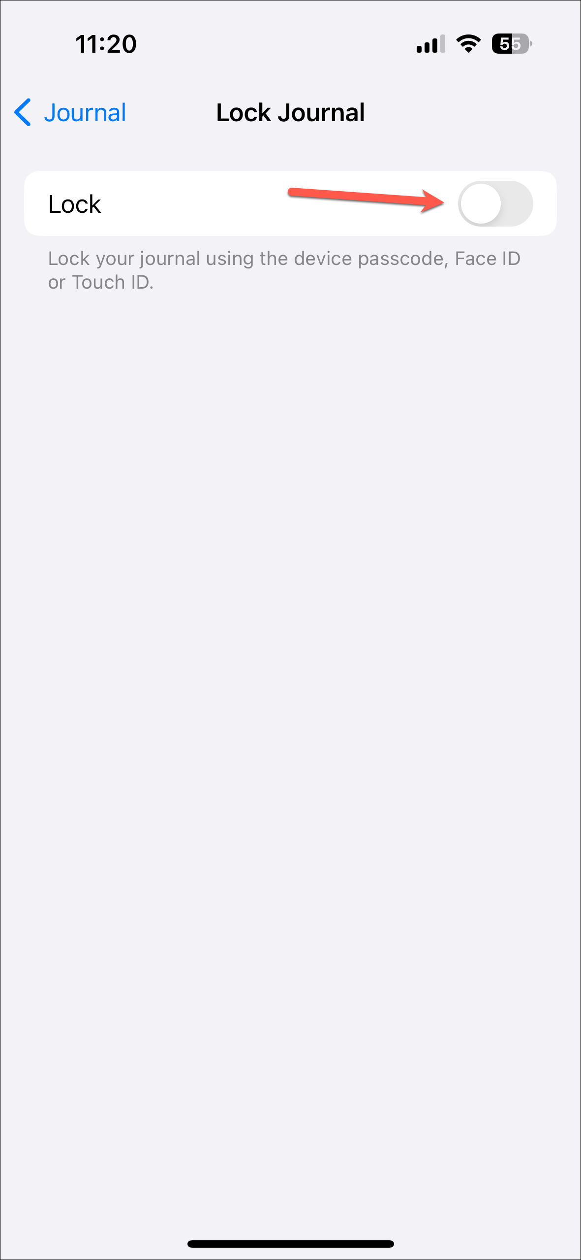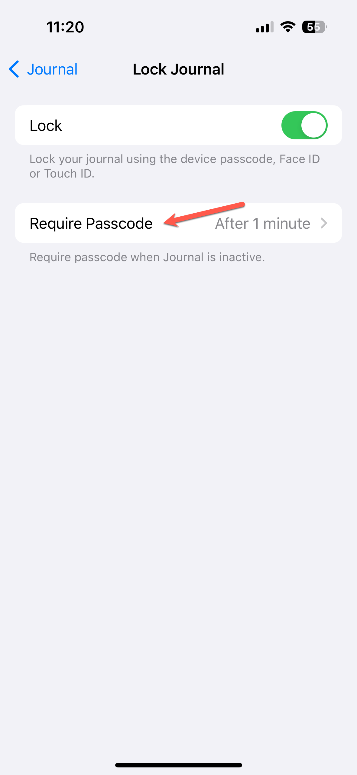 - You'll need to enter your device passcode to access Lock Journal settings.