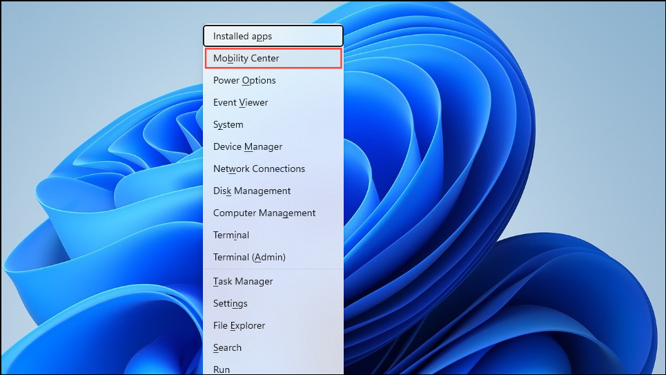 Win + Xshortcut to open the Quick Launch menu and then click on Mobility Center.