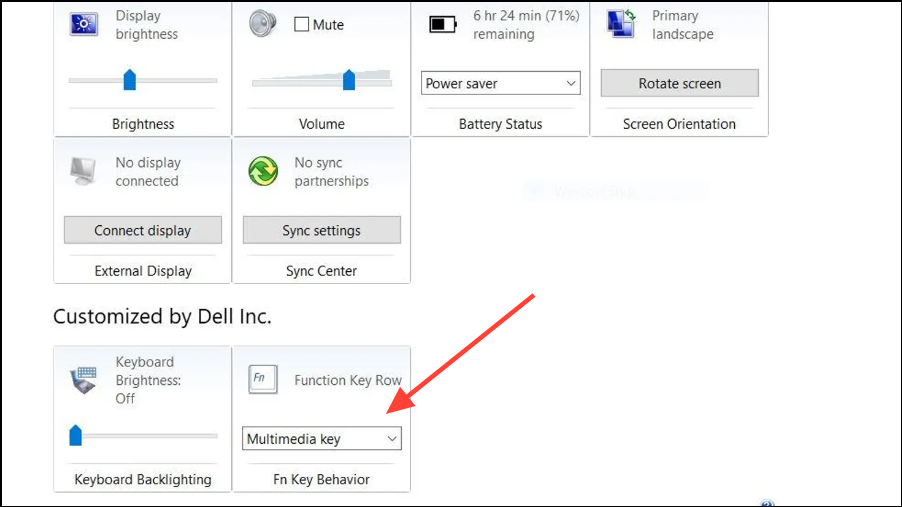 Note: The Mobility Center is present on all Windows 11 PCs, but you may not have the section that controls the Function Key behavior, depending on the brand, make, and model of your computer.