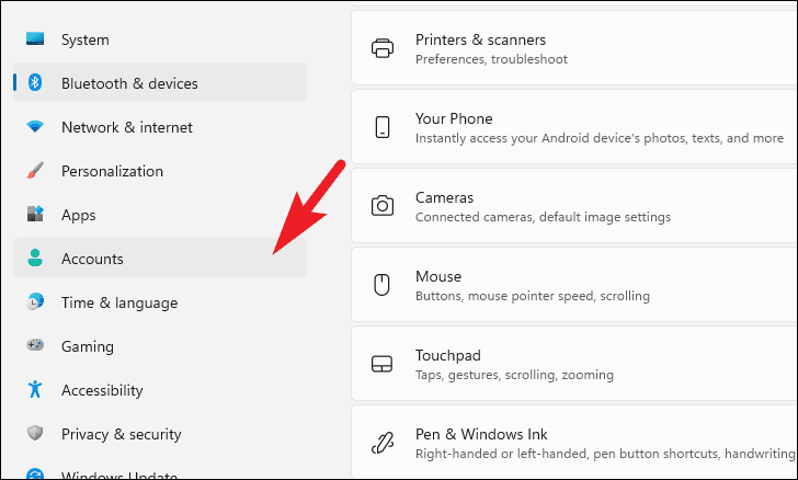Settingsapp and click on Accounts from the left sidebar.