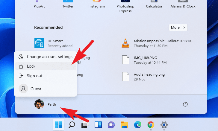 - Click on your account name or picture at the bottom left corner of the Start menu.