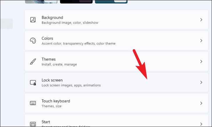- Under Personalization settings, click on Lock screen.