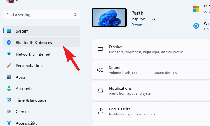 - Click on Bluetooth & devices from the left sidebar.