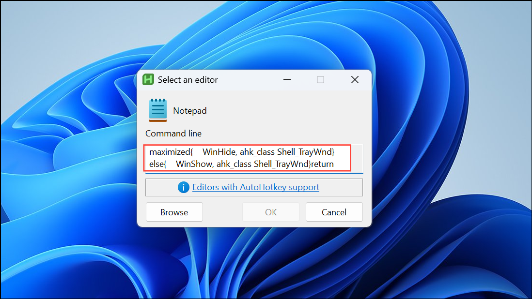 Step 3: Save the file and double-click it to run the script. AutoHotkey will now manage your taskbar visibility based on the active window's state. To stop the script, right-click the AutoHotkey icon in your system tray and select "Exit."