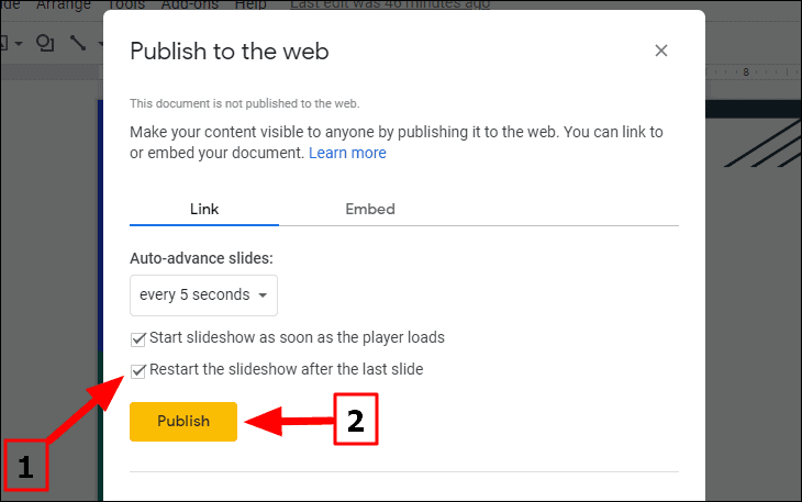 There are two ways of looping a slide, without publishing it to the web or after publishing it. We will be discussing both methods in this article.