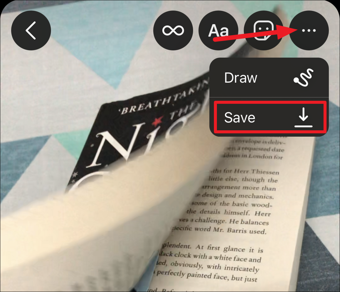 You can either save the looped video to your camera roll or share it to your Instagram story or with friends. To save it to your camera roll, tap the three-dot menu in the top-right corner, then tap âSaveâ.