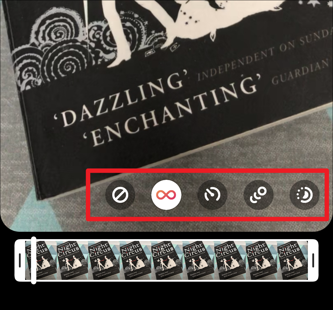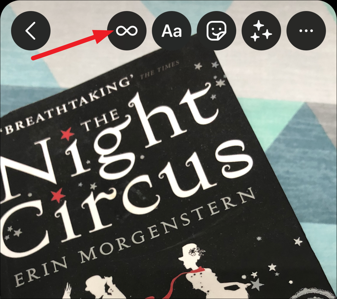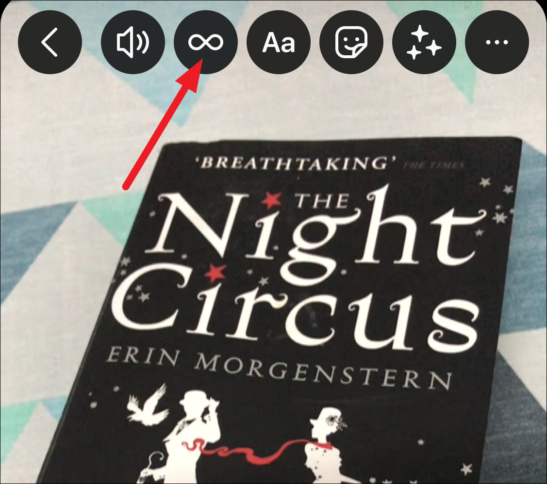 The live photo will load onto the story screen. Now, either tap and hold anywhere on the screen or tap the âBoomerangâ icon (Infinity symbol) to convert it into a boomerang.