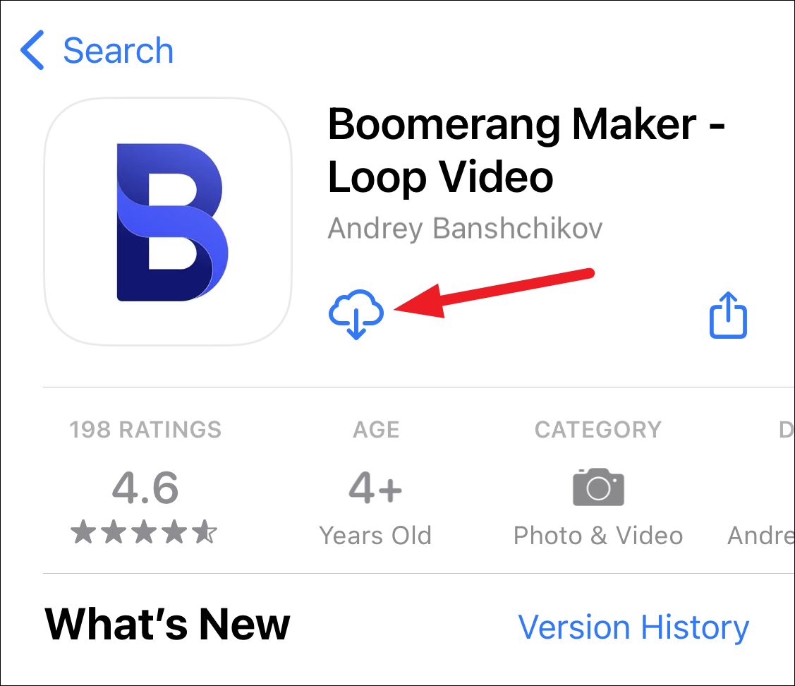 Boomerang Maker makes it rather simple to loop and save your video. You can also loop your live photos using the app. Go to the App Store and tap the âGetâ button to install Boomerang Maker.