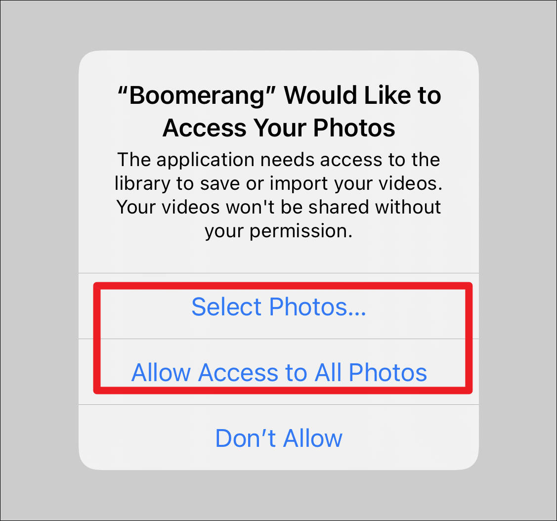 Then, open the app. The very first option youâd see as soon as you open the app is to give the app access to your camera roll. You can either tap âAllow Access to All Photosâ or tap âSelect Photosâ and select the videos you want to have the app access to.