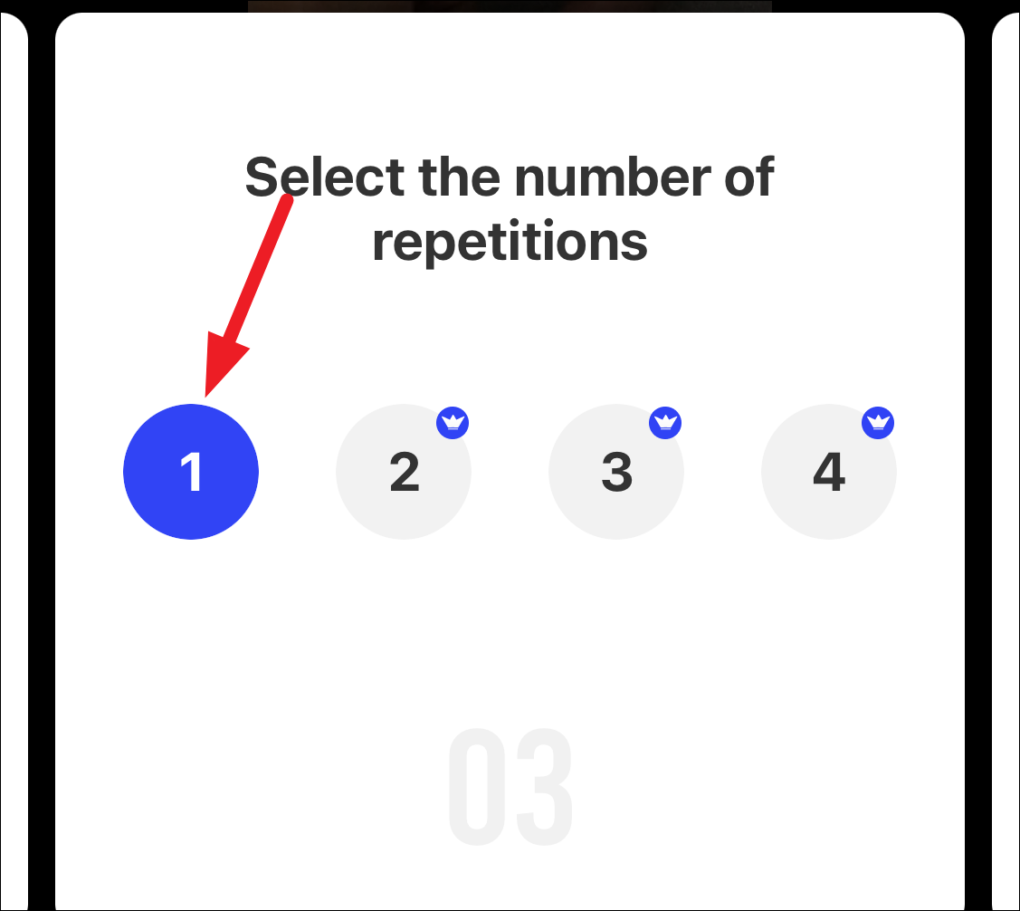 Swipe again to adjust the number of repetitions. Only 1 repetition is available for free, but premium users can select up to 4 repetitions.