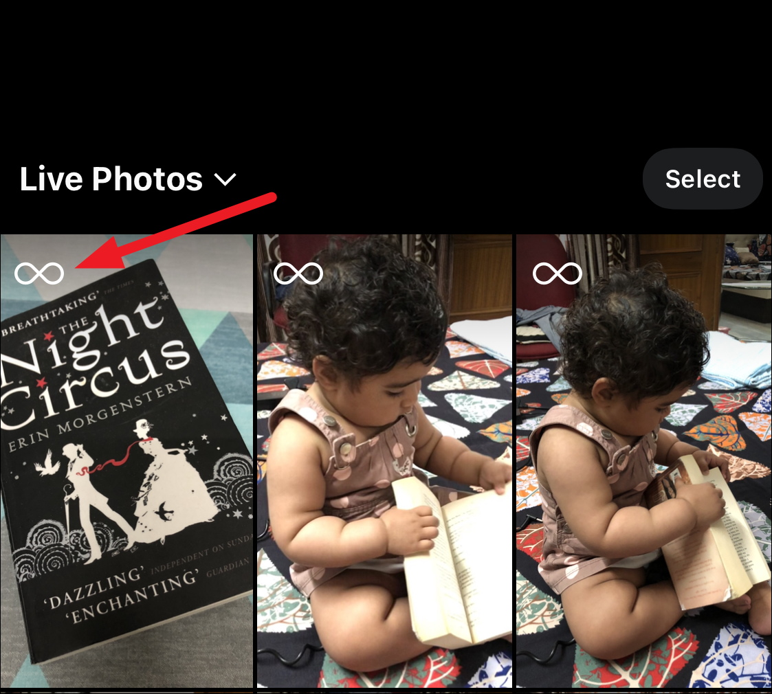 Youâll notice that live photos will have a boomerang icon on thumbnails. Tap the photo to load it.