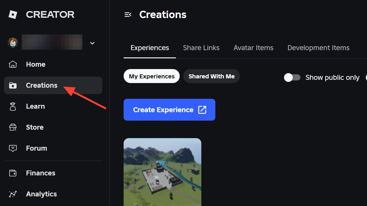 Step 4: Open your Creator Dashboard at create.roblox.com/dashboard/creations in a web browser.