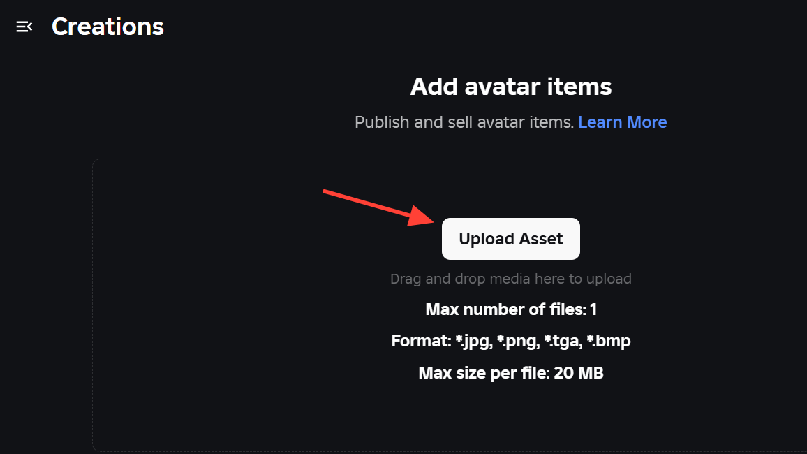Step 1: Open Create → Avatar Items in a web browser. This ensures you’re in the right area for clothing uploads.