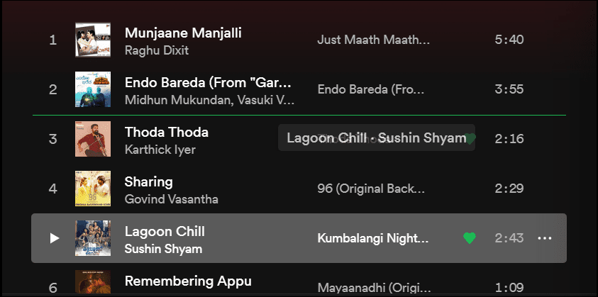 To reorder tracks on the Spotify desktop app, simply double-tap and drag the track to the desired position. Follow the guiding green line to determine the new position of the track.