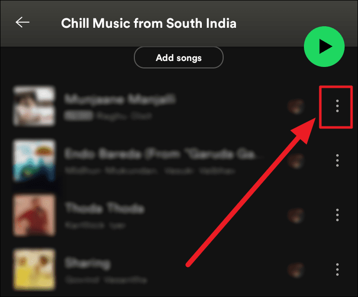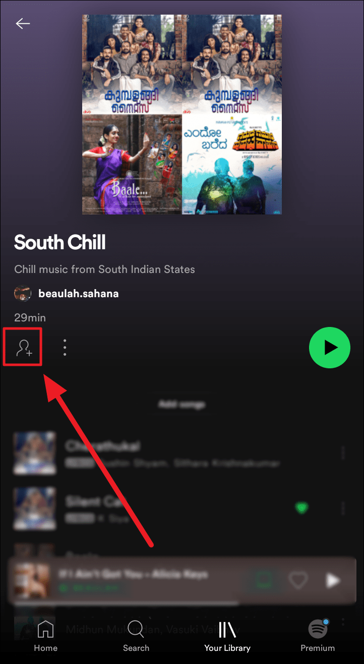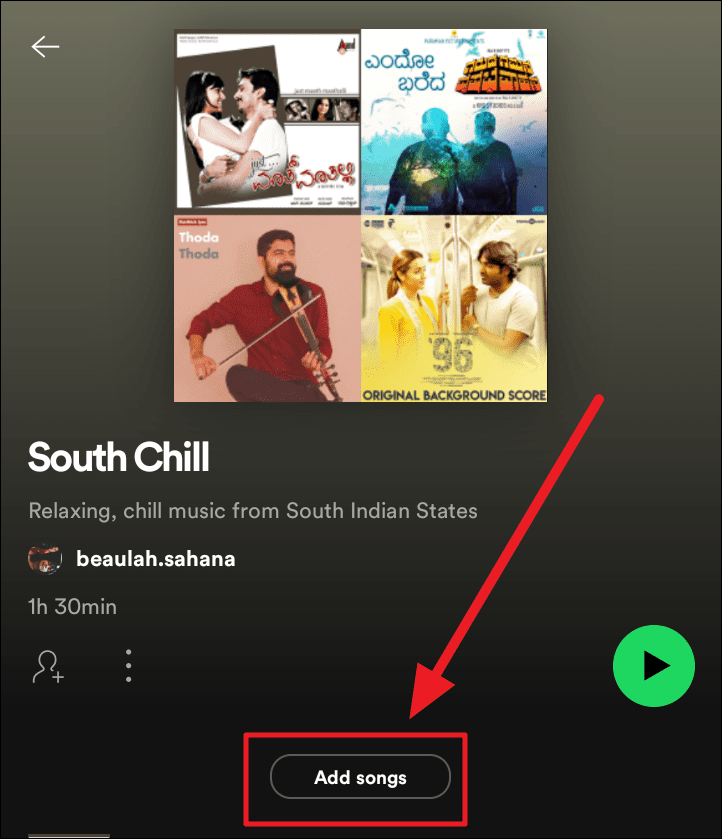 Tap the ‘Add songs’ button below your collaborative playlist’s information.