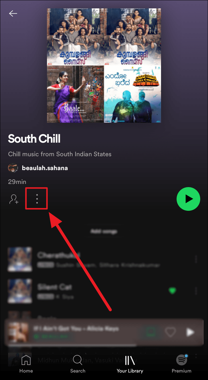 On your phone, go back to the collaborative playlist and tap the ellipsis icon (three vertical dots).