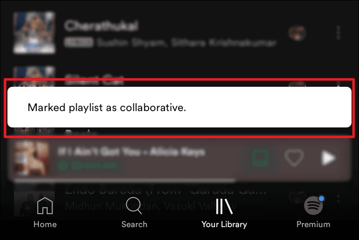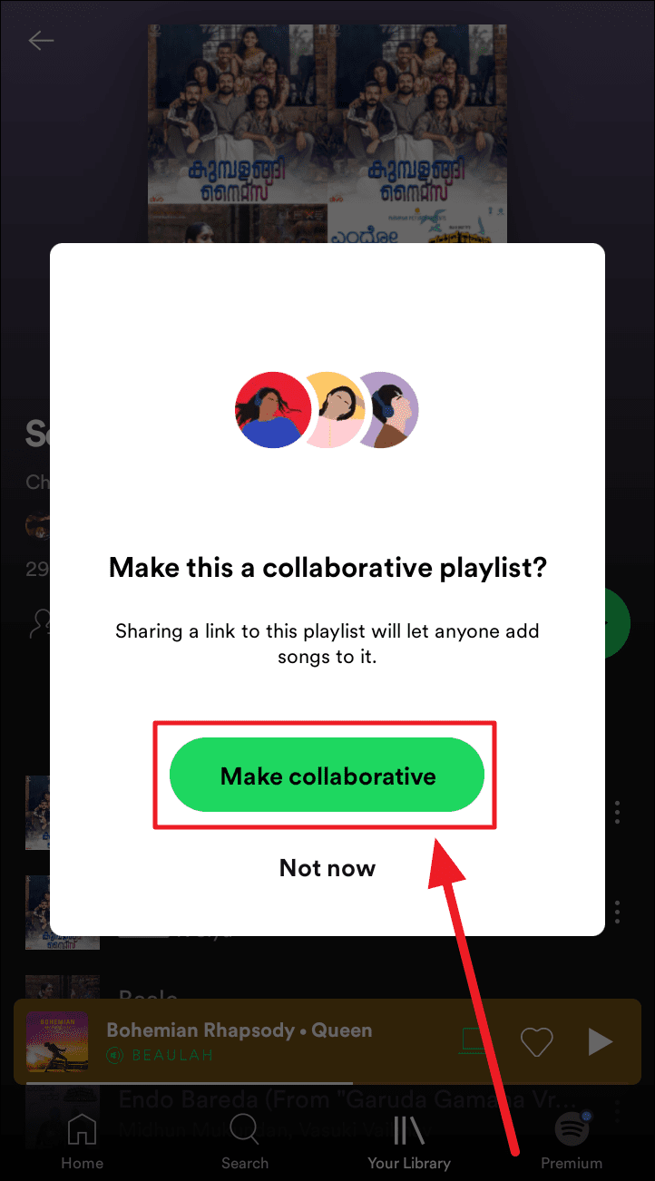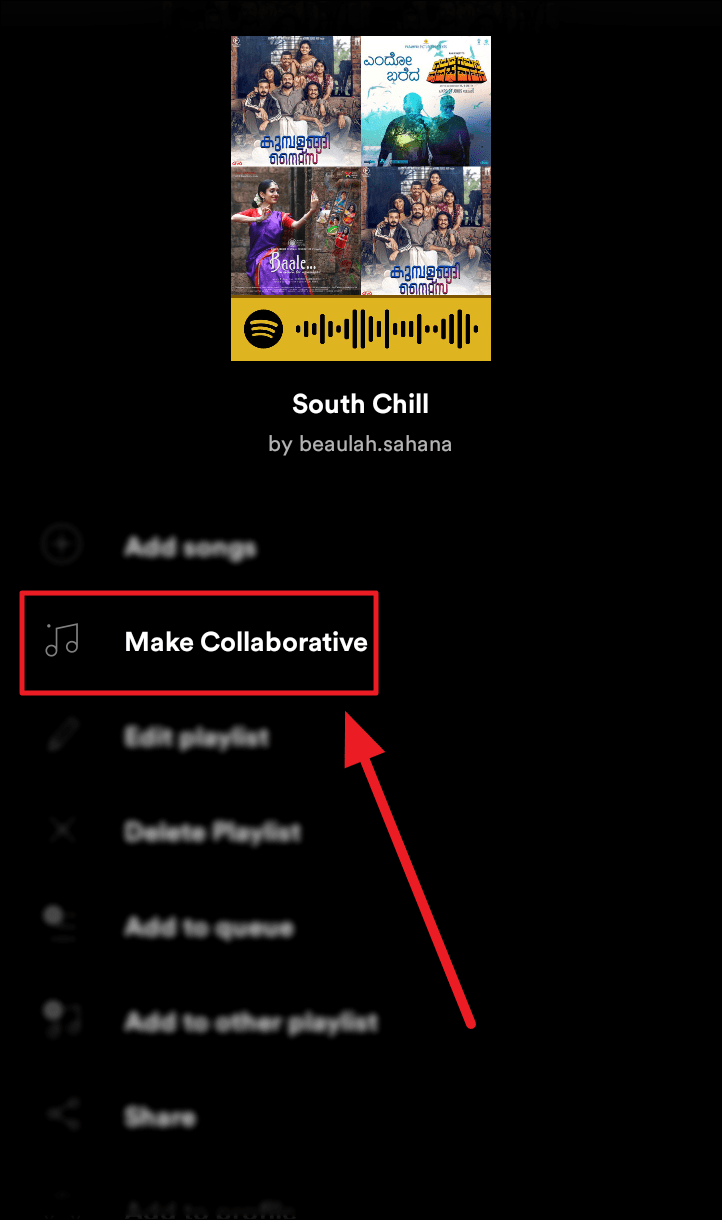 You will receive a prompt – asking if you want to make the playlist collaborative or not. Tap the ‘Make collaborative’ button in the prompt to confirm your choice.