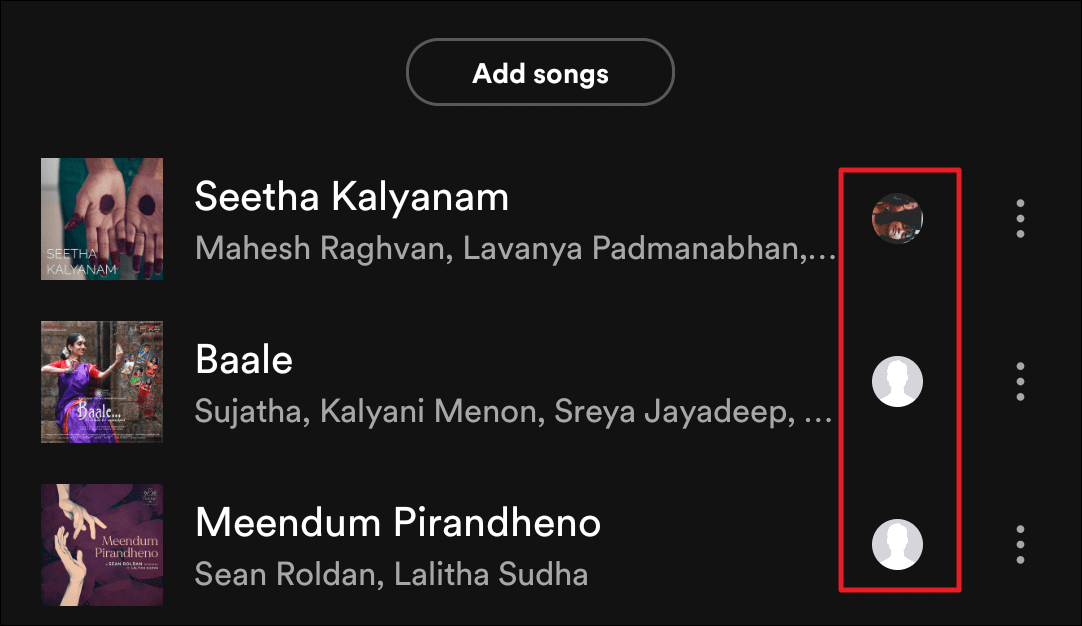 When partners begin adding their music to the collab playlist, you will see their respective profile picture icons next to their additions. This is visible only on the Spotify mobile application. When you make a playlist non-collaborative, all songs added by other partners will become your (the owner’s) added tracks.