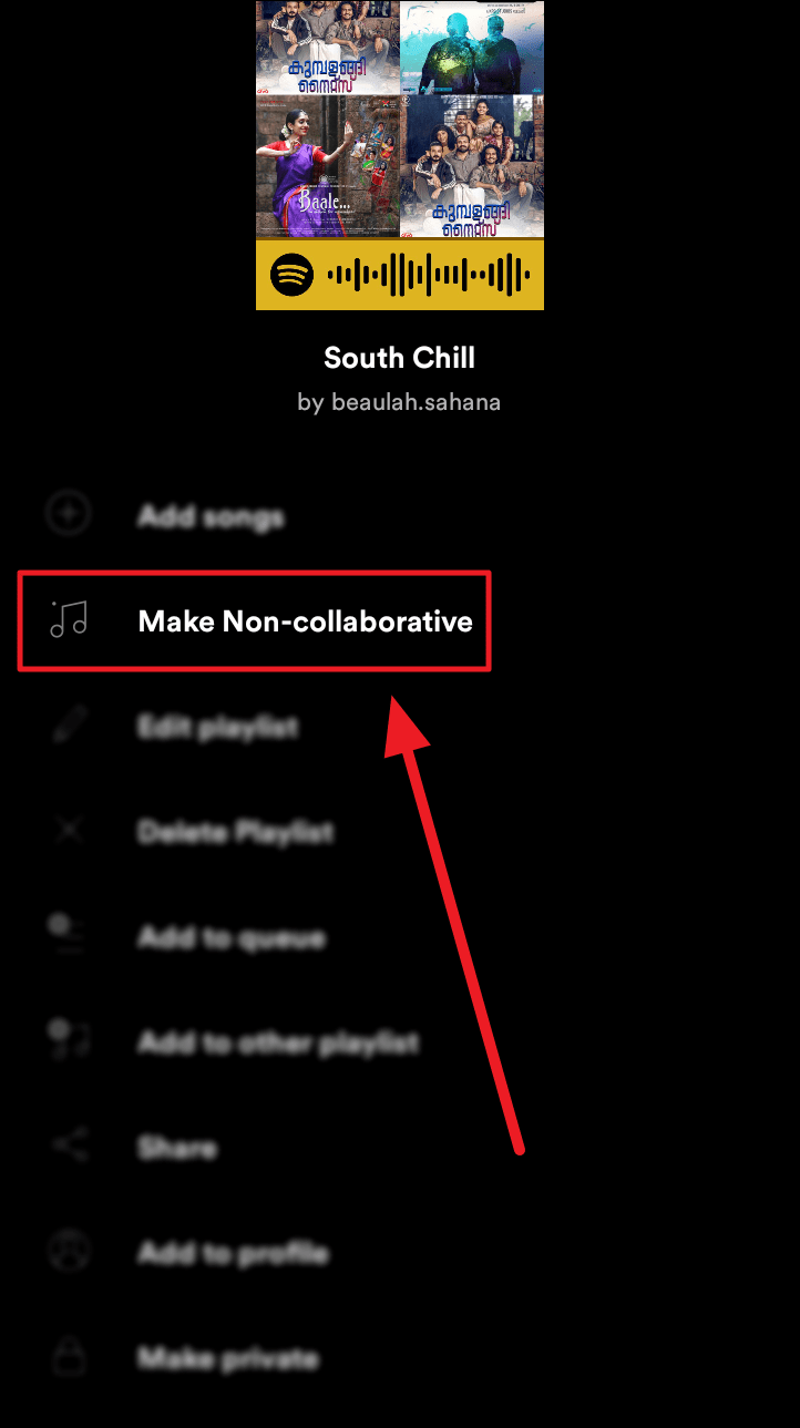 Select the ‘Make Non-collaborative’ option in the next menu to make your playlist uncollaborative.