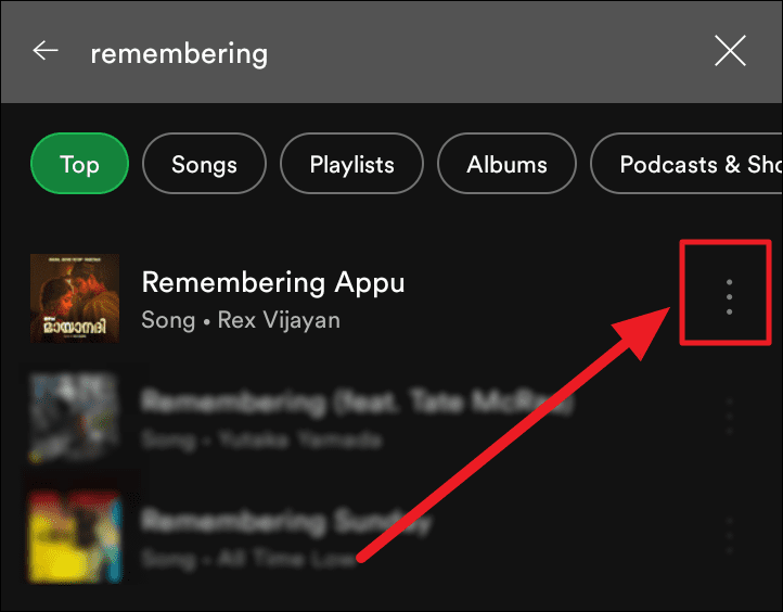 Method 1. Manually search for the song you want to add to your collaborative playlist or find it in a playlist and tap the ellipsis icon (three horizontal dots) next to the track.