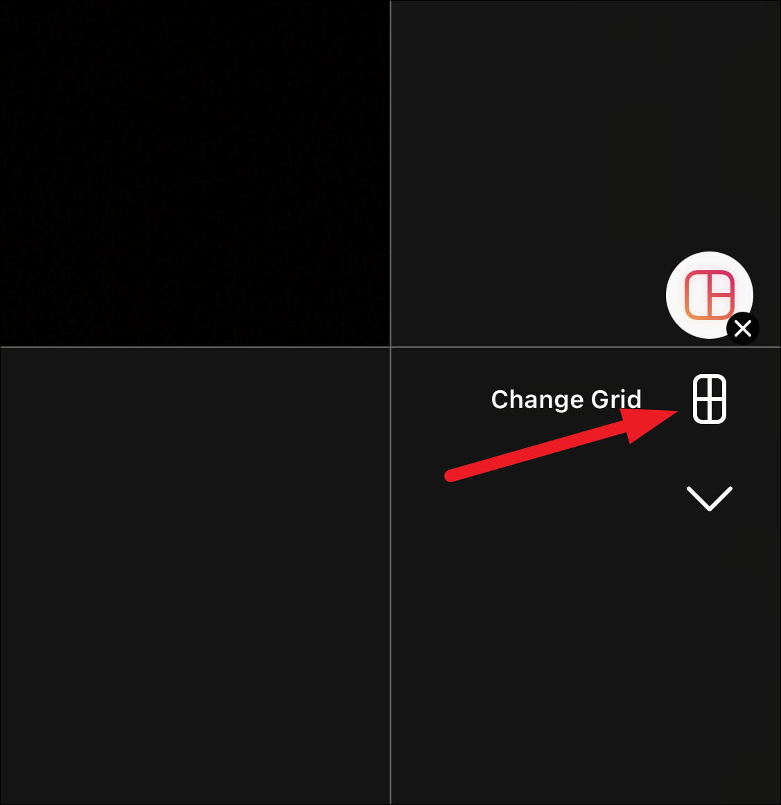 By default, a 2×2 grid for making a collage will load. To change the layout, tap the ‘Change Grid’ icon on the right edge of the screen.