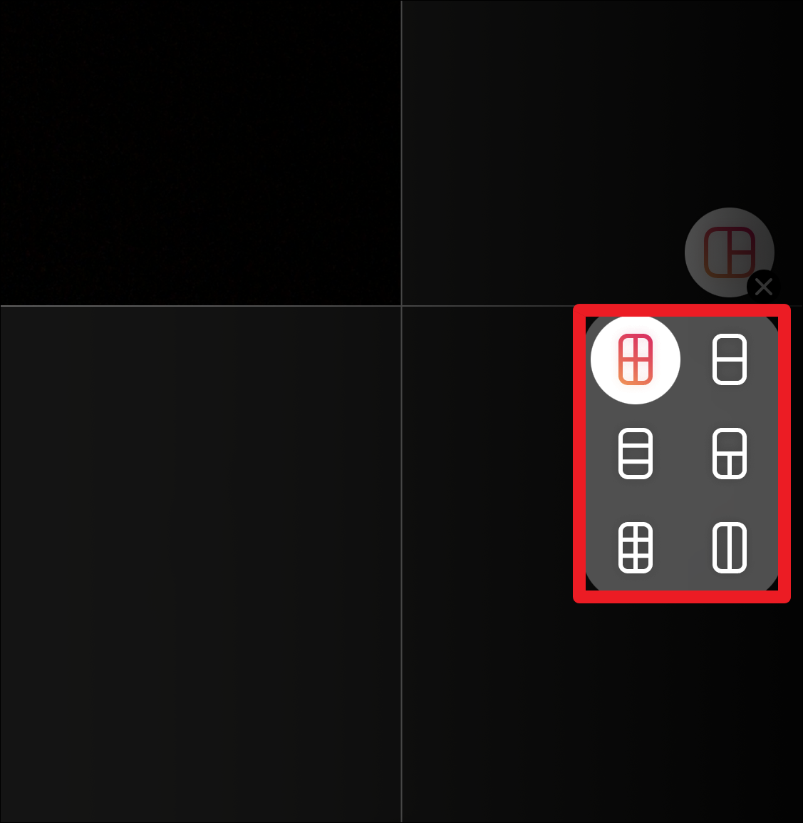 A layover menu with other grid options to choose from will appear; tap the layout you want to choose.