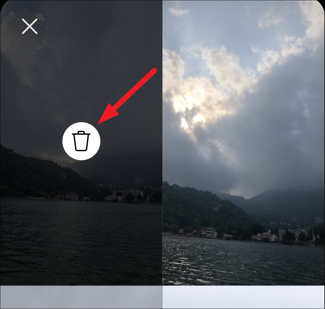 To delete an image, drag it towards the bottom of the screen and drop it onto the trash can icon that appears.
