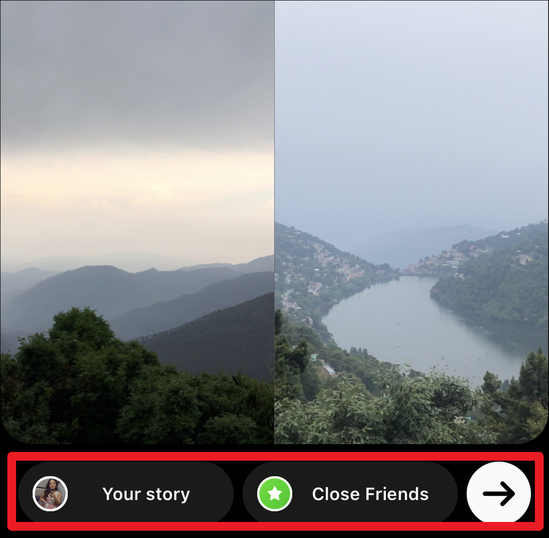 Then, you can share the collage on your story, with your close friends’ list, or with selected friends via DM.