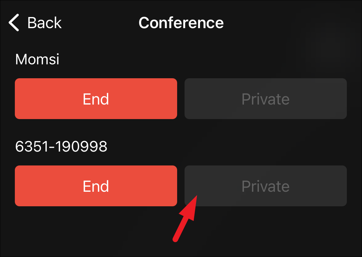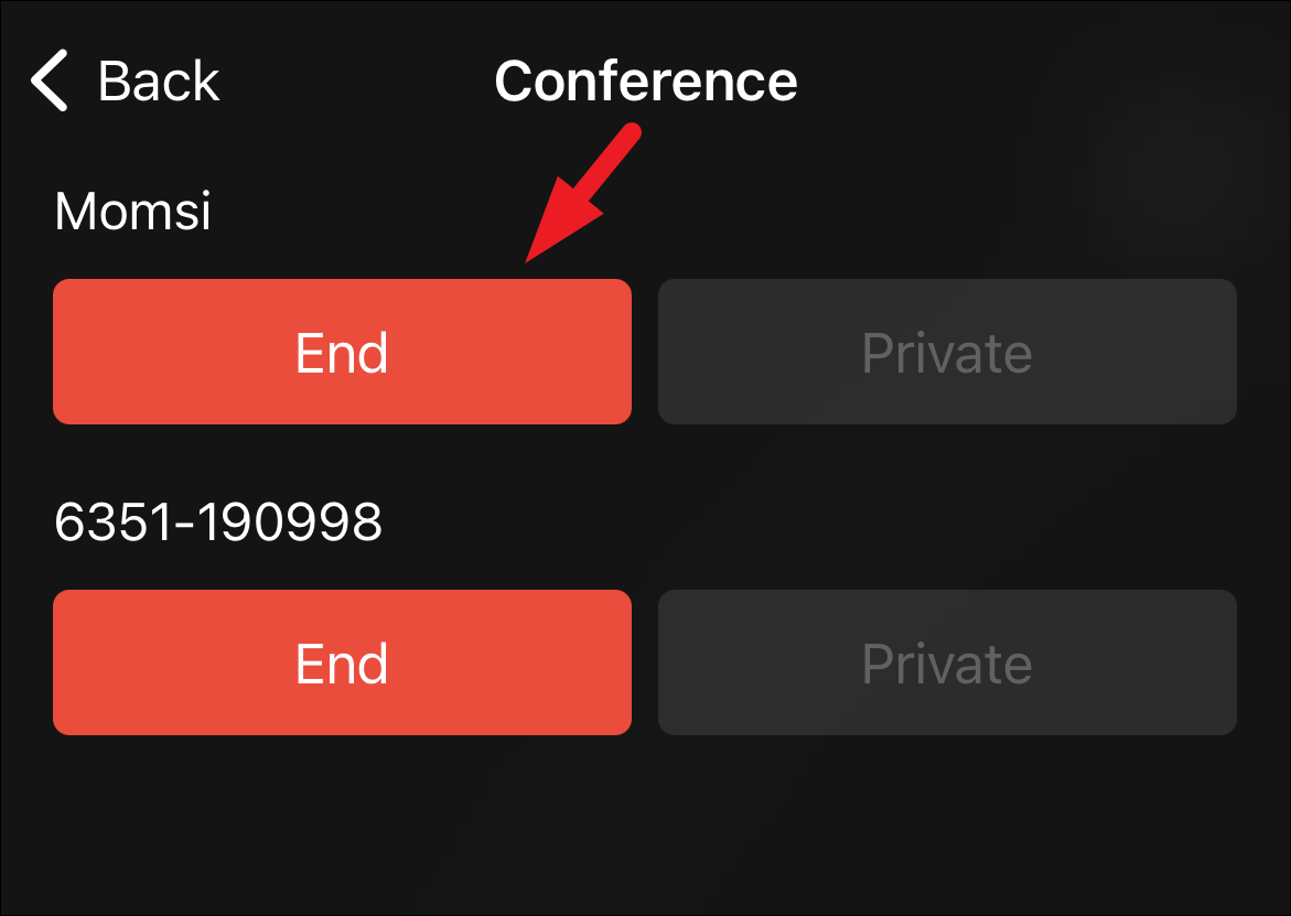 In case you wish to disconnect a single participant from the conference call, tap on the ‘End’ button to remove the individual participant.
