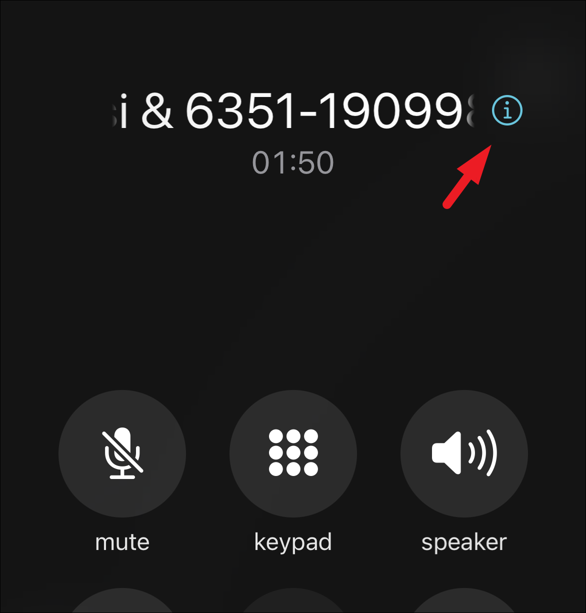 To do so, on the ongoing call screen, tap on the ‘i’ button present right next to the caller information to continue.