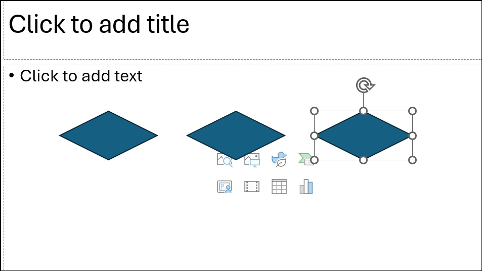 Step 2: Click and drag to draw each required shape onto your slide. For repeated shapes, copy and paste with Ctrl+C and Ctrl+V, or quickly duplicate with Ctrl+D.