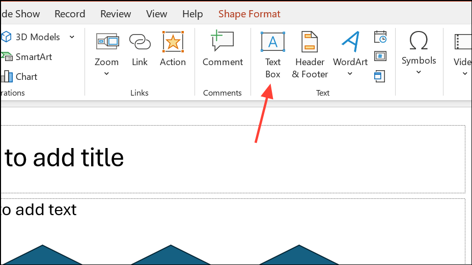 Step 4: Add text by selecting any shape and typing directly into it. For labeling arrows or connectors, use the Text Box tool from the Insert tab. Draw the text box near the line and enter your label.