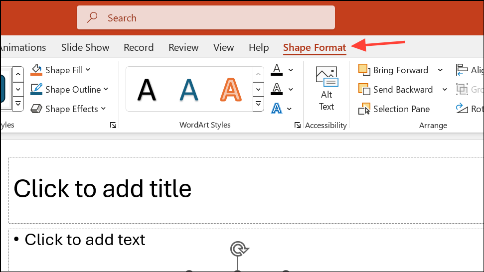 Step 5: Customize shape colors, borders, and effects by selecting a shape and using the Shape Formattab. Adjust fill color, outline, shadow, or other visual properties to match your presentation’s style or to emphasize key steps.