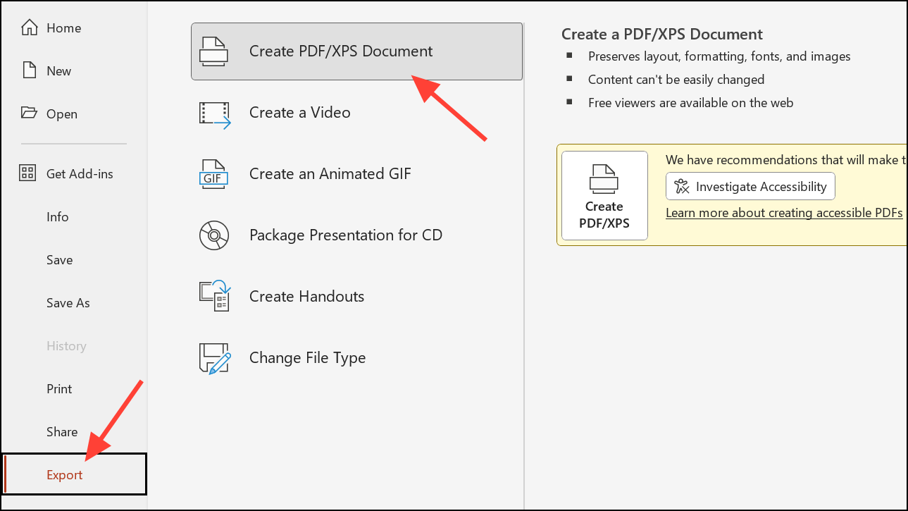 After building your flowchart, you can export your slide or the entire presentation as a PDF for easy sharing. Select File > Export > Create PDF/XPS Document to generate a high-quality, portable version of your diagram. You can also copy and paste your flowchart into other applications, or save your slide as an image by right-clicking the slide in the thumbnail pane and choosing Save as Picture.