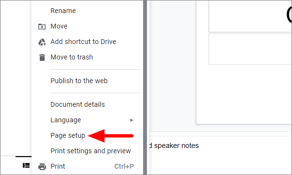 Scroll down and select ‘Page setup’ from the menu.