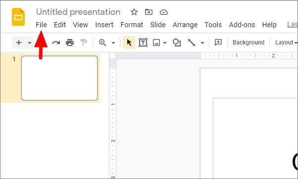 After you open the presentation, click on ‘File’ at the top-left corner under the file name.