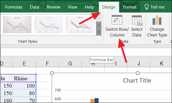 If the graph does not display your data as intended, you can switch the parameters on the X-axis and Y-axis. To do this, go to the Design tab and select the Switch Row/Column option. This will adjust the data representation on your graph.